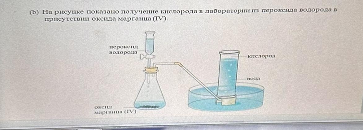 b) На рисунке показано получение кислорода в лаборатории из пероксида подорода в