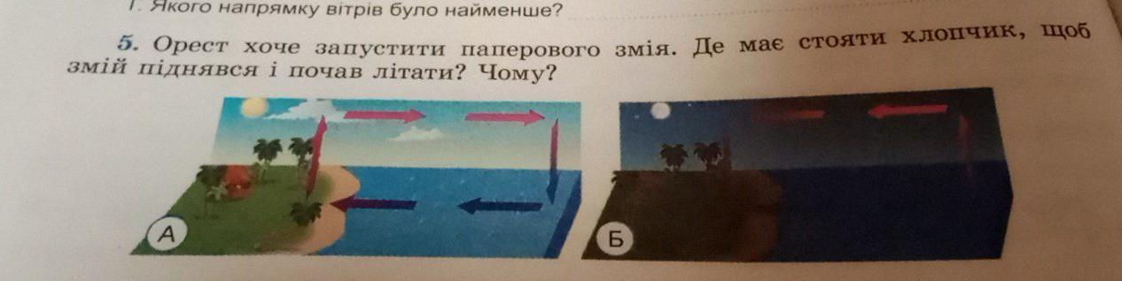 Орест хоче запустити паперового змія. Де має стояти хлопчик,щоб змій піднявся і почав літати? Чому?