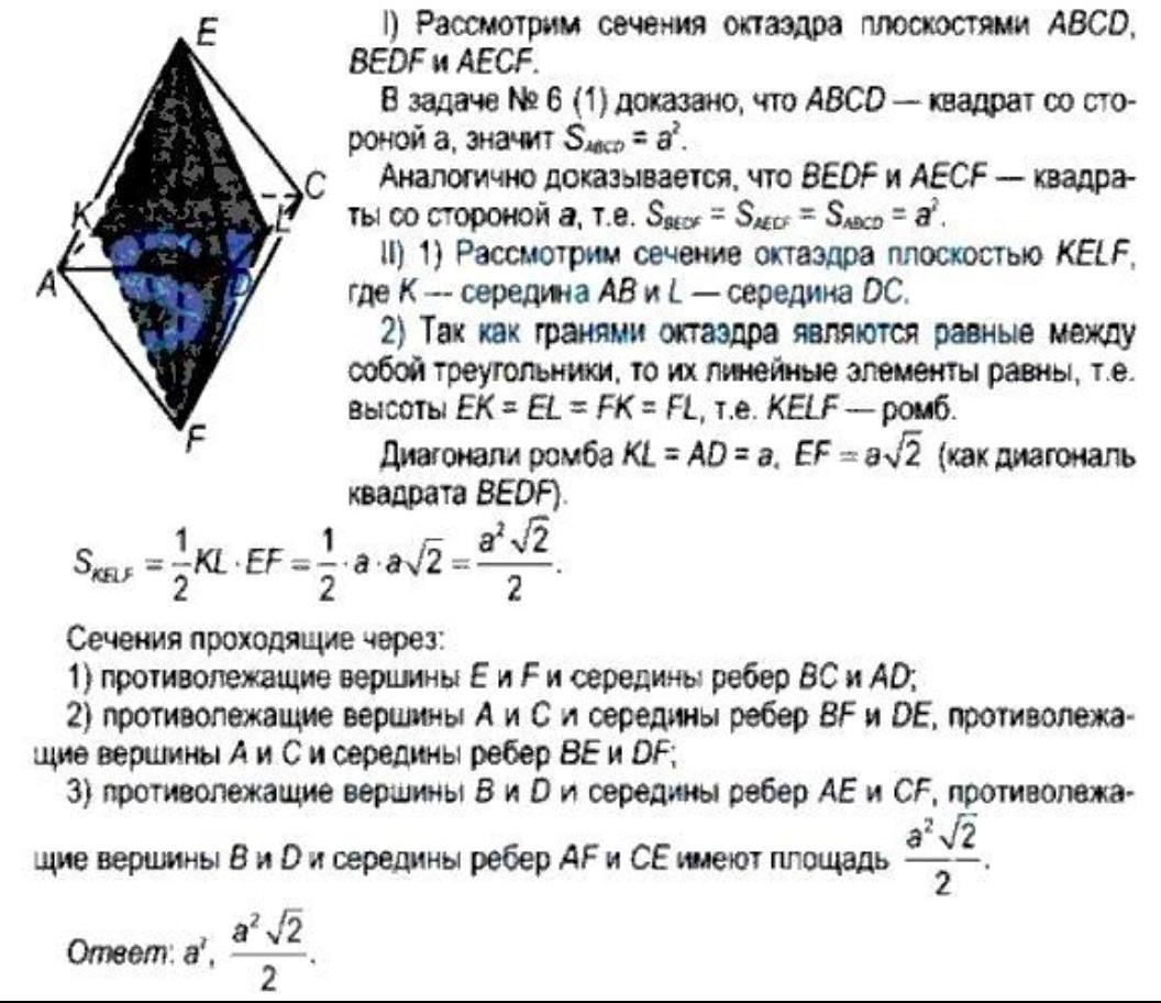 Довжина ребра октаедра дорівнює . Знайдіть площі перетину цього октаедра його площинами симетрії.