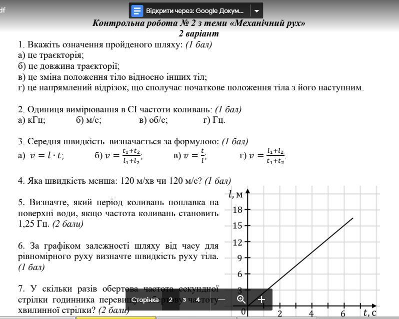 Срочно допоможіть контрольна робота з фізики номер 2 (2 варіант даю 30 балів 7 КЛАС)