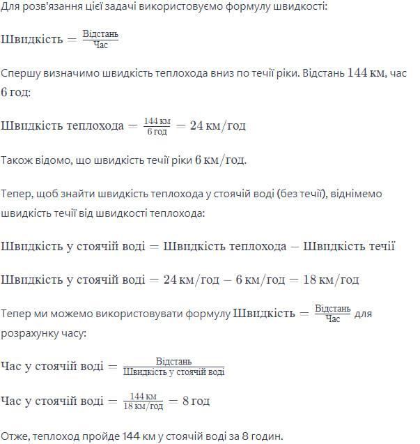 теплоход проплыл вниз по течению реки расстояние между пристанями равное 144 км за 6 часов скорость течения реки 6 км/ч за какое время теплоход