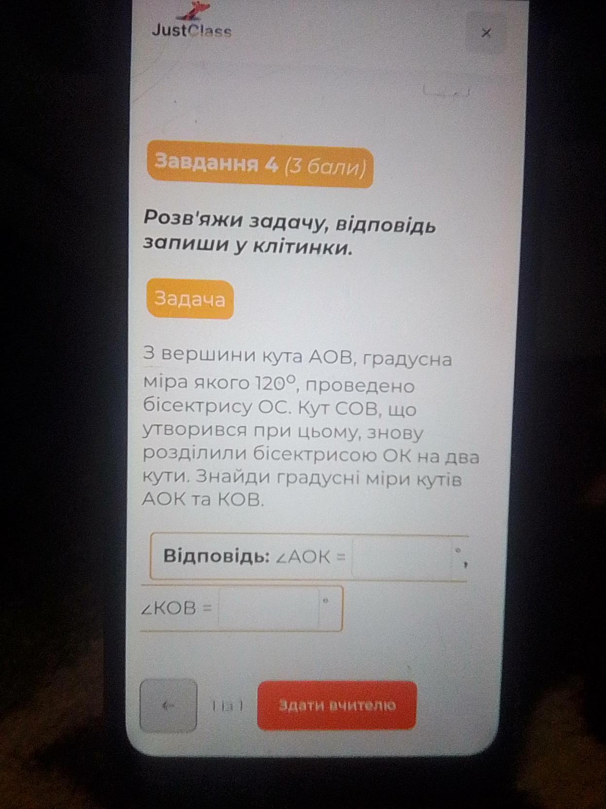 1 ) 120 : 2 = 60 ° - АОС , СОВ