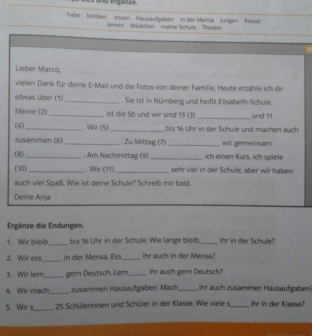 1. Wir bleiben bis 16 Uhrin der Schule. Wie lange bleibt ihr in der Schule?