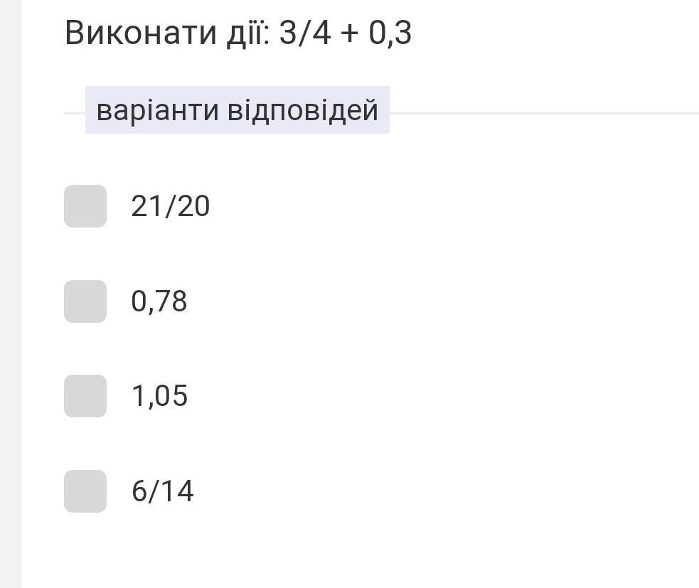 Потім додайте десяткову форму дробу до 0.3: 0.75 + 0.3 = 1.05.