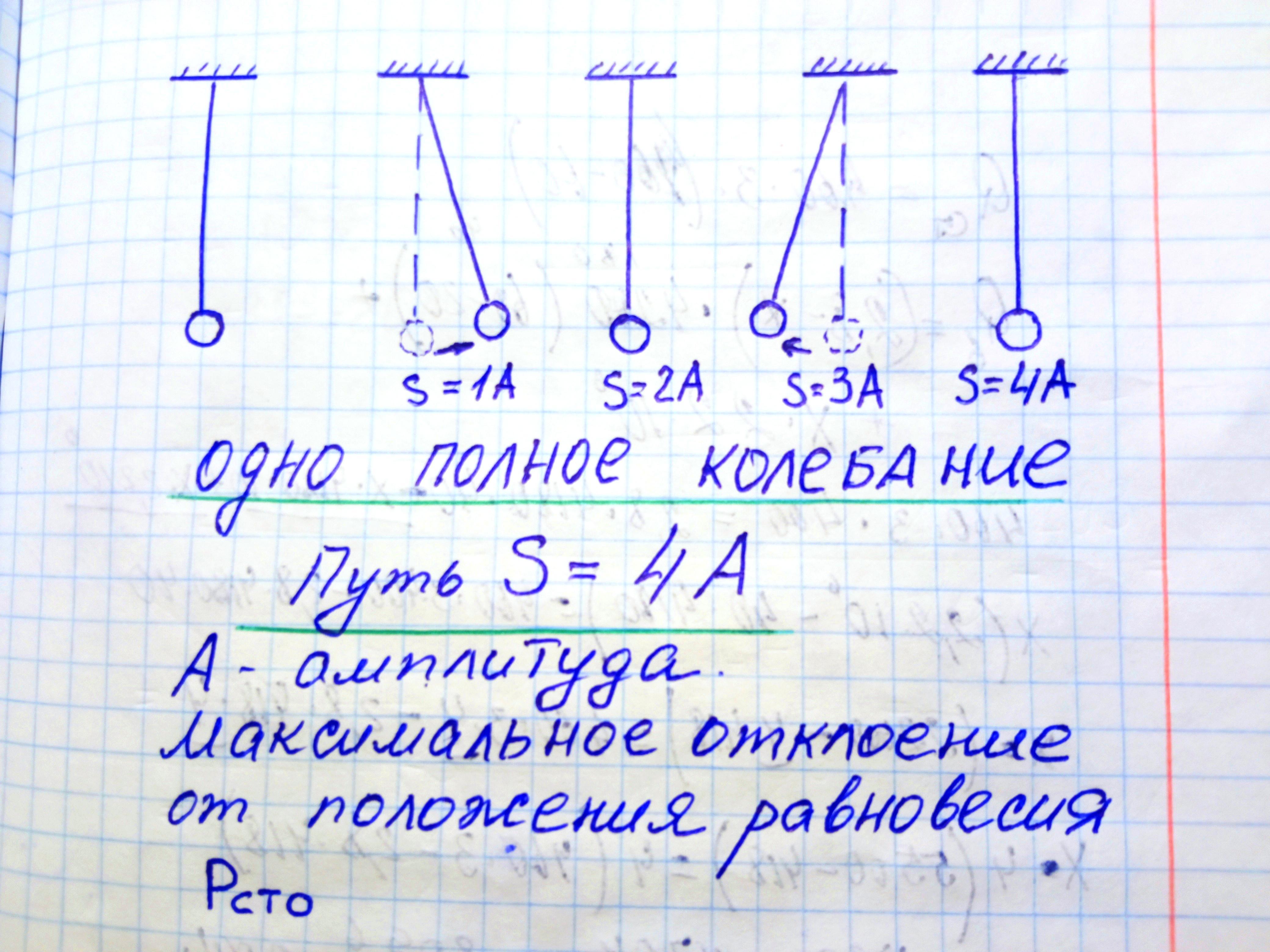 Грузик колеблется также. За одно колебание проходит путь=4А.