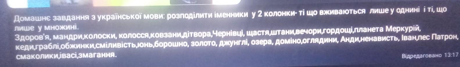 Множина: Мандри, колосся, ковзани, Чернівці, вечори, гордощі, кеди, граблі, обжинки, сміливості, юність, Анди, ненависті, змагання.