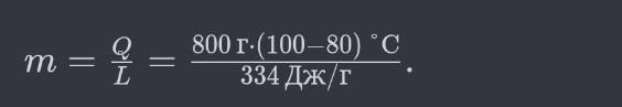 Після розв'язання цього виразу отримаємо масу води, яка зформувалася після встановлення теплової рівноваги за температури 80 °C.