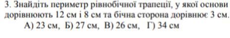 так як трапеції рівнобічна то і друга її сторона теж буде 3 см .