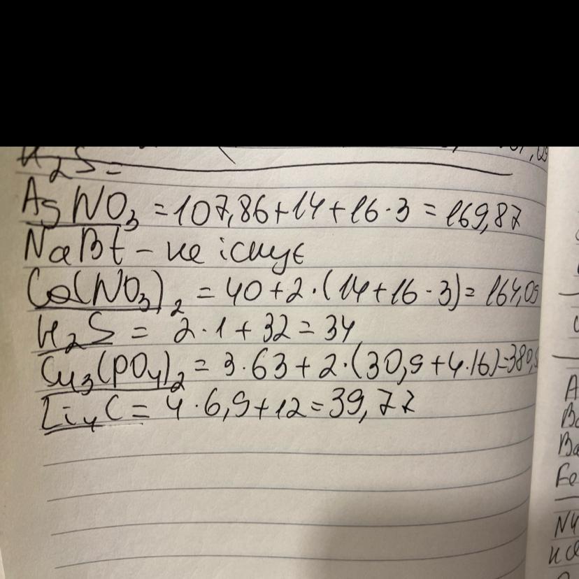 AgNO3 , NaBt , Ca(NO3)2 ,H2S , Cu3(PO4)2 Li4C ,