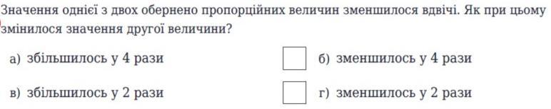 Якщо одна з обернено пропорційних величин зменшилася вдвічі, то інша величина збільшилася у 2 рази. Таким чином: