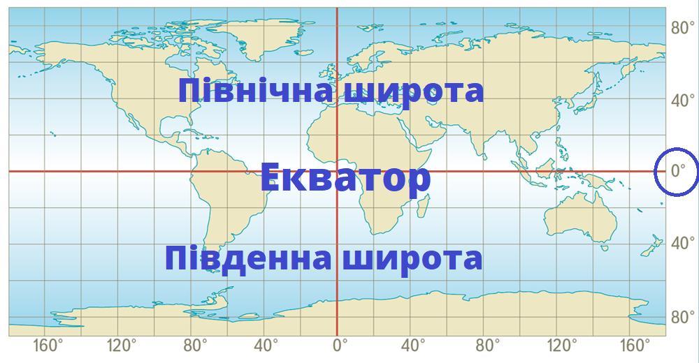 Географiчна широта – це вiдстань у градусах вiд екватора до точки, координати якої потрiбно визначити.