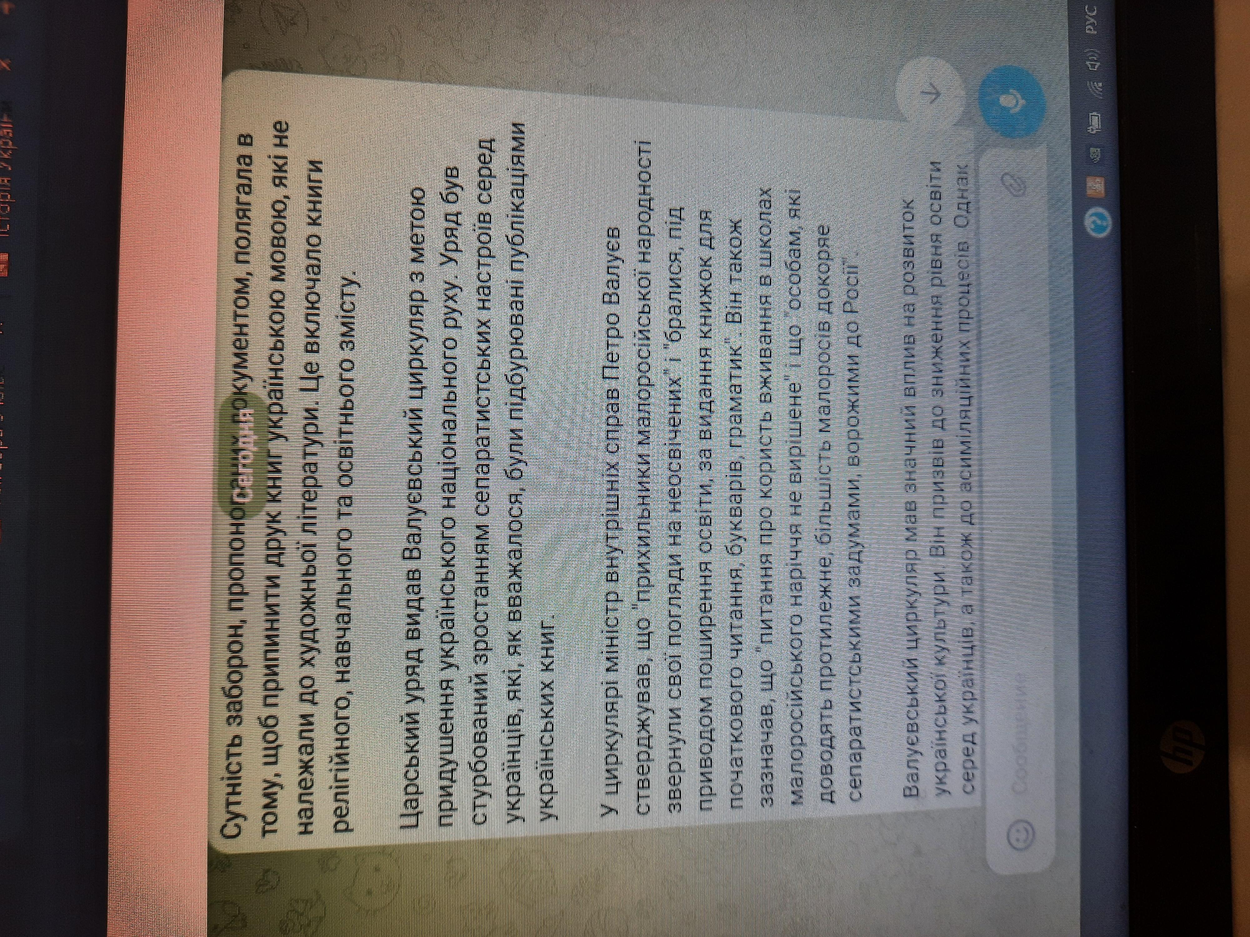 У чому полягала сутність заборон, пропонованих документом? Яку мету переслідував царський уряд, видаючи Валуєвський циркуляр?