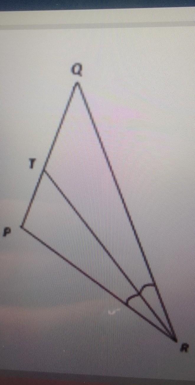 В трикутнику PQR бісектриса RT ділить сторону PQ на відрізки PT и TQ. Знайти РТ, якщо TQ=3 см, PR=8 см, QR=12 см.