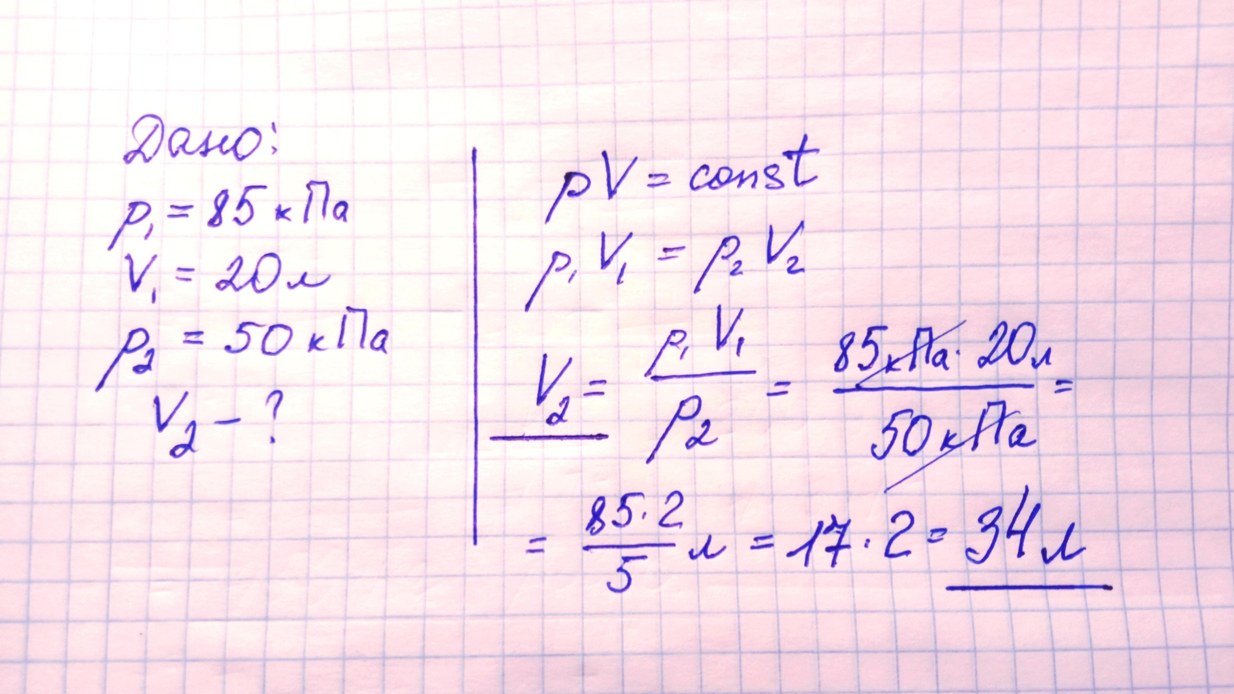 СРООООЧНО ДАЮ 100 БАЛОВ 5. Який об'єм займав газ при тиску 50 кПа, якщо при тиску 85 кПа його об'єм дорівнює 20 л?
