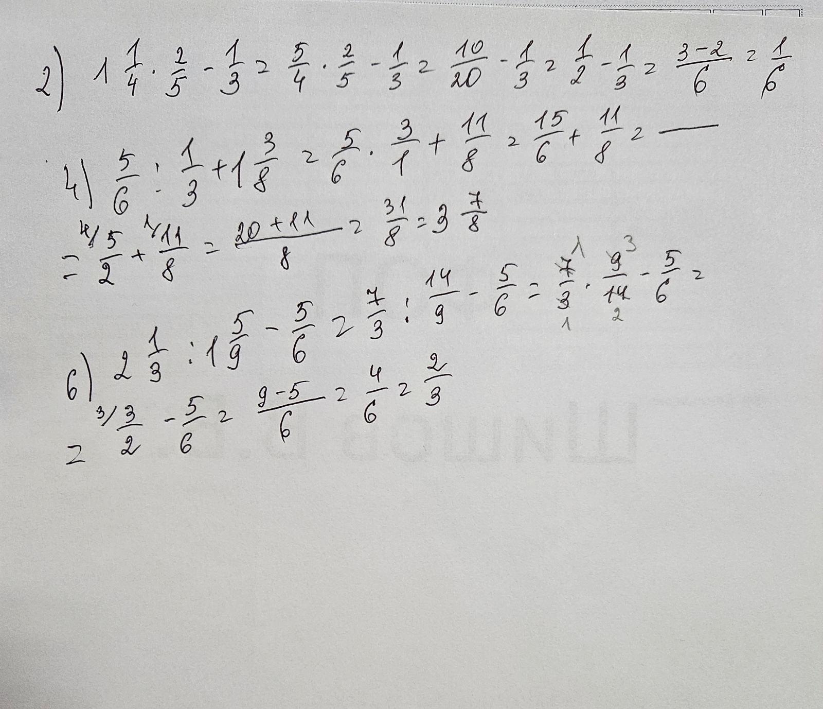 2)1 1/4*2/5-1/3=5/4*2/5-1/3=2/4-1/3=2/12