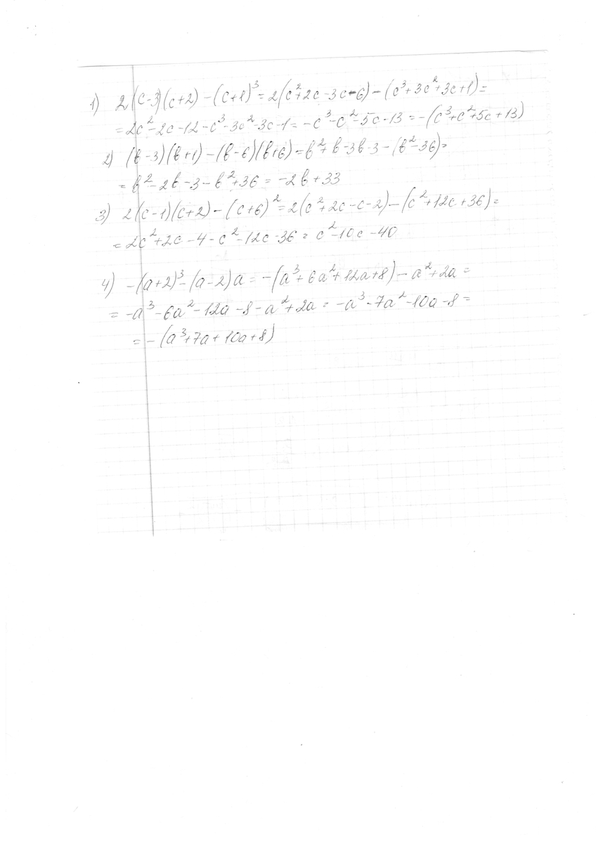 Преобразуйте в многочлен выражение:2(c-3)(c+2)-(c+1)^3