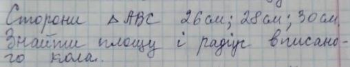 =(26+28+30)/2=84/2=42см пів-периметр.