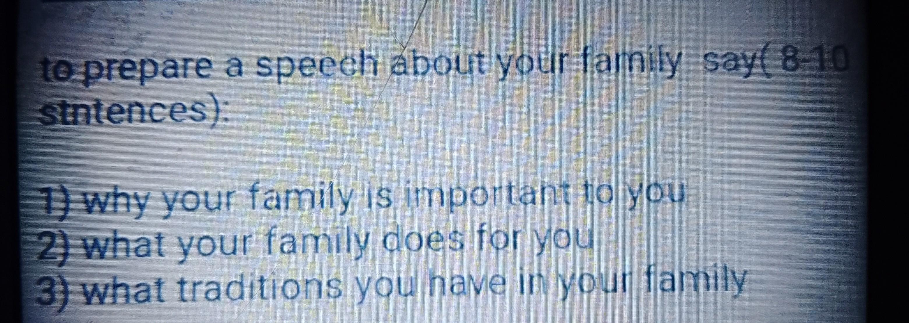 1) My family is important to me because they are the closest people to me, whom I have known since childhood. They were with me when I was bad or good.
