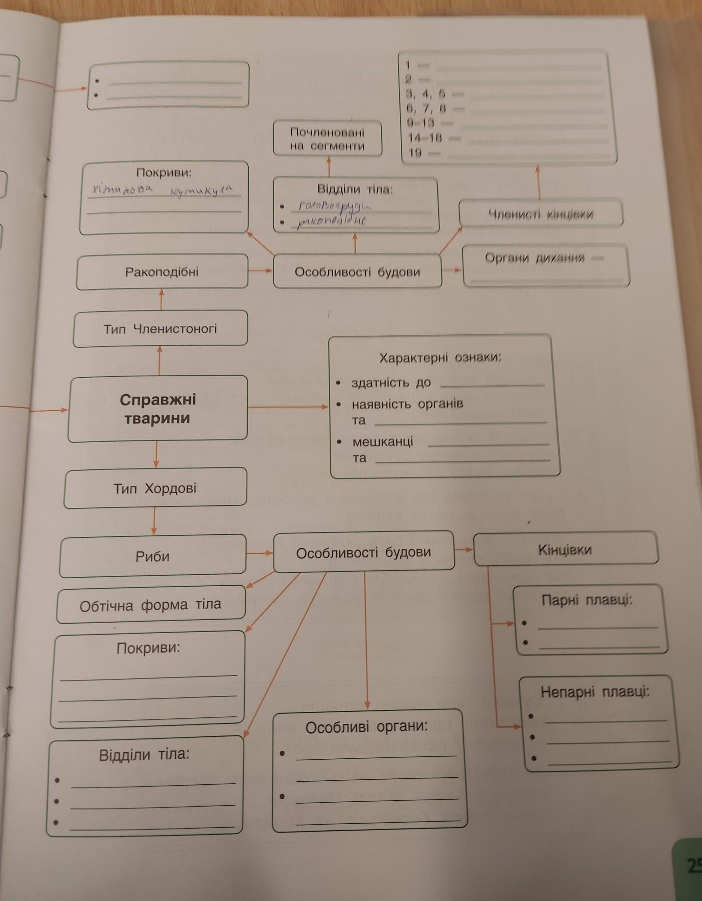 Покриви: хіти нова Ракоподібні Тип Членистоногі кутикула Справжні тварини Тип Хордові Риби Обтічна форма тіла Покриви: Вiддiли тіла: Почленовані на сегменти Вiддiли тіла: головогруди ракоподібно 1 2 Особливості будови Ta 3, 4, 5 6, 7, 8 9-13 14-18 19 здатність до наявність органів та мешканці Характерні ознаки: Особливості будови Членисті кінцівки Особливі органи: Органи дихання Кінцівки Парні плавці: Непанівці:
