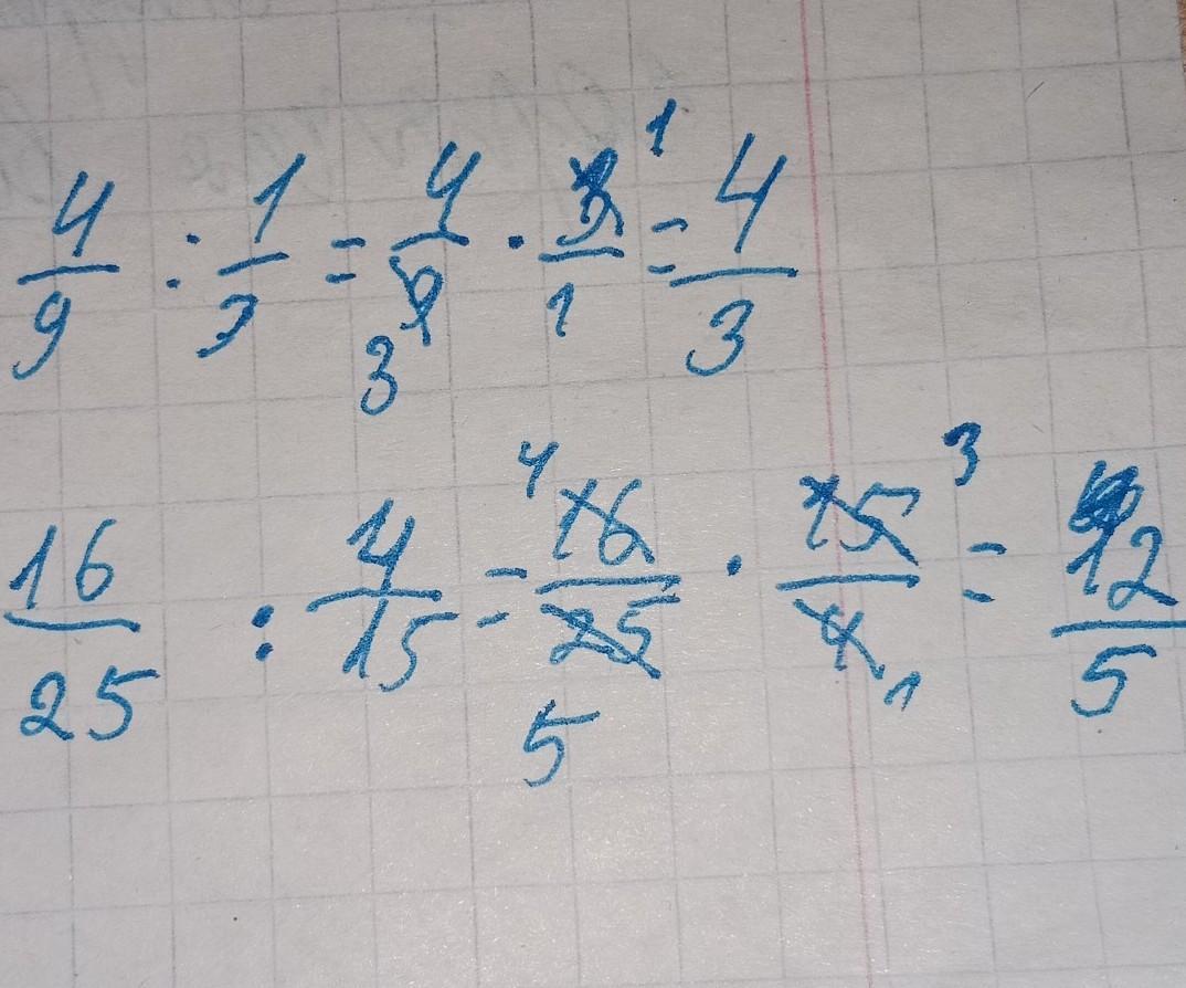 16/25 : 4/15 = 16/25 * 15/4 = 4/5 * 3/1 = 12/5 = 2 2/5