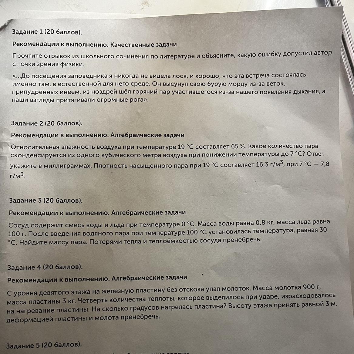 2. Все умозаключения, вычисления и выводы должны быть сделаны самостоятельно, без привлечения посторонних источников! Дополнительная литература может использоваться только для анализа условия задачи и описания физических законов и величин, используемых в решении. За списанное решение балл значительно снижается.