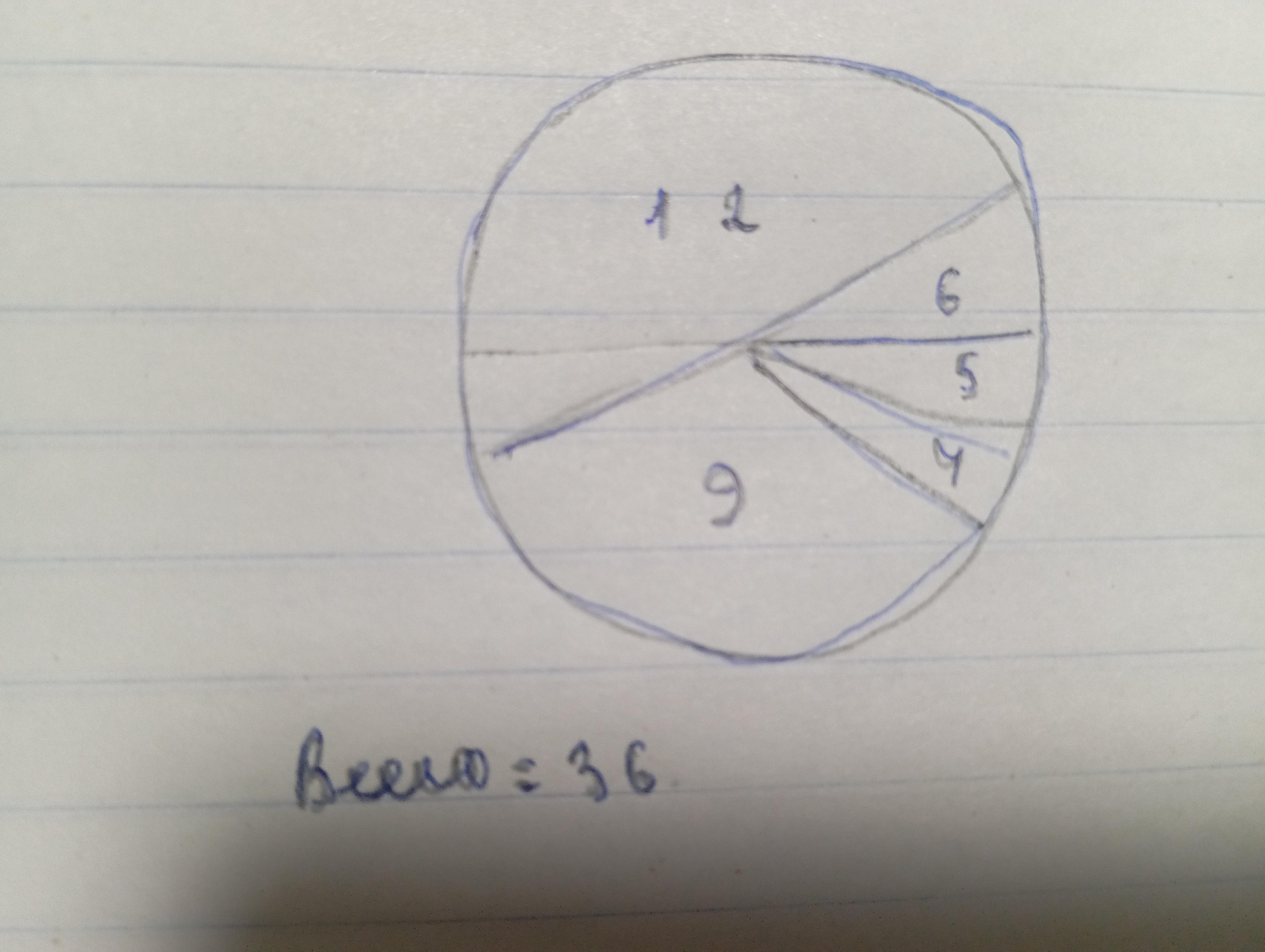 У 6-в класі після уроків 12 учнів відвідують спортивну секцію,6 учнів-музичну школу,5 учнів-художню школу,9 учнів-танцювальний гурток,а 4 учні проводять час удома.За цими даними побудуйте кругову діаграму.