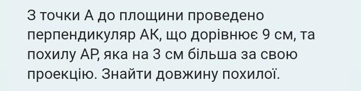 ΔАРК – прямоугольный . Пусть КР=х, тогда АР=х+3. По т Пифагора (х+3)²= х² +9² , х=12. Тогда АР=12+9