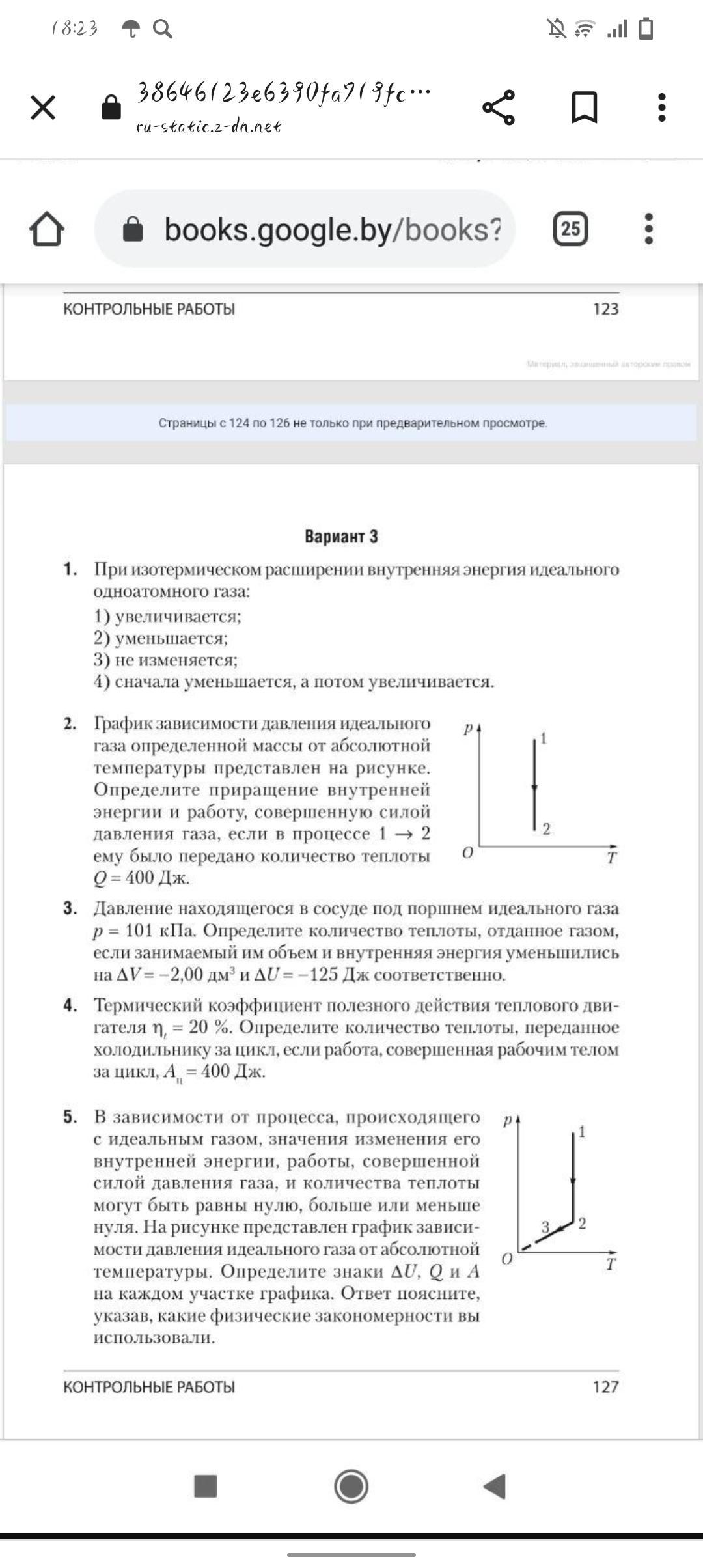 1. При изотермическом расширении внутренняя энергия идеального одноатомного газа: