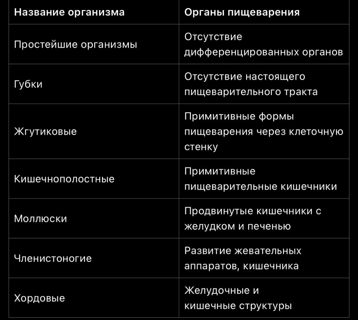 , сделать таблицу 1 столбик название организма , 2 столбик органы пищеварения. Проследить хронологию появления органов пищеварения