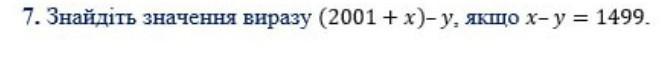 7. Знайдіть значення виразу (2001 + х)-у, якщо х-у = 1499.