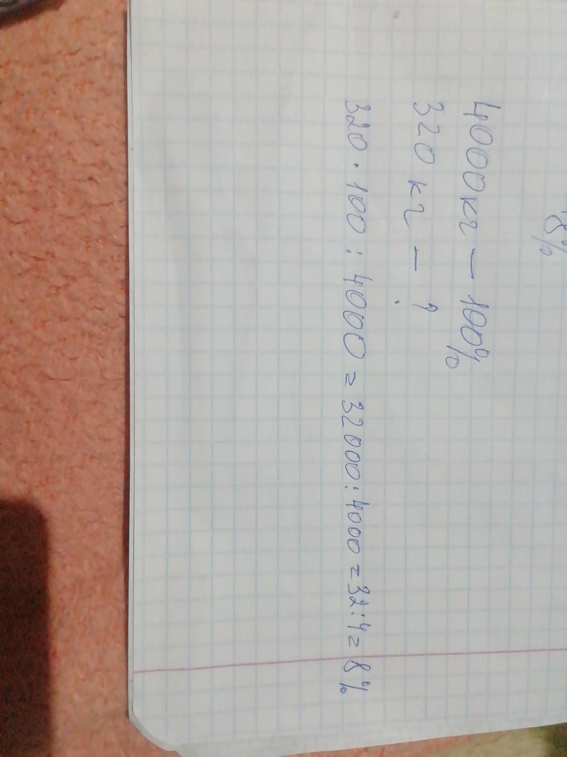 Знайди відсоток умісту заліза в руді якщо 4000 кг цієї руди містить 320 кг заліза