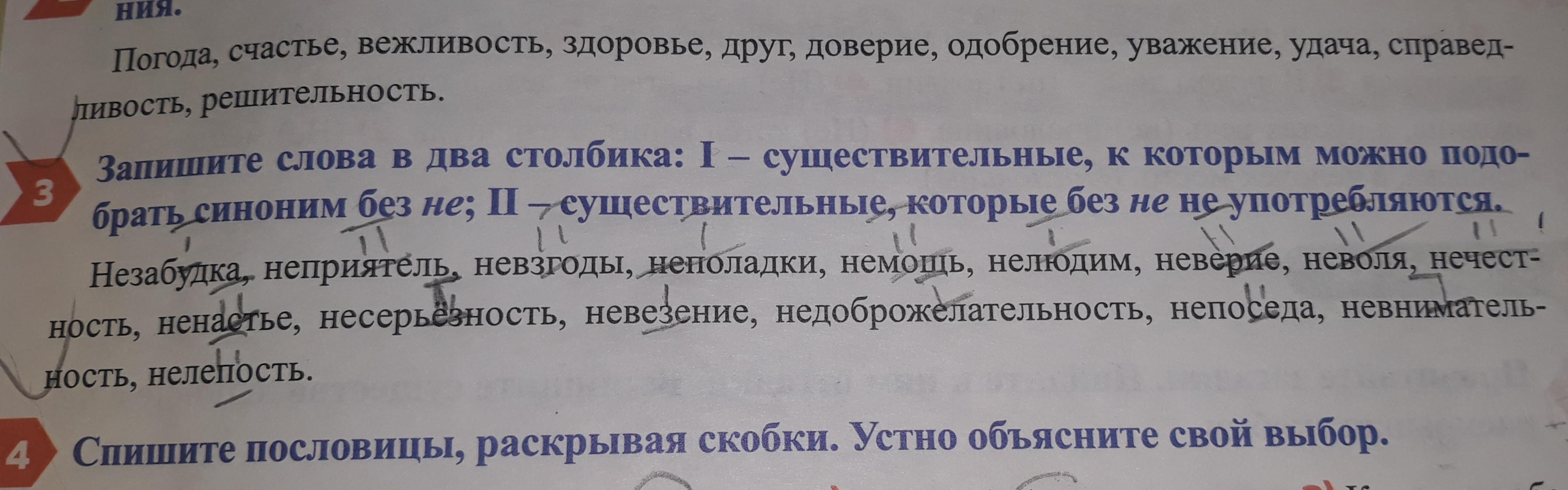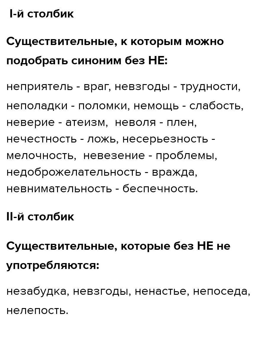 Запишите слова в два столбика:1-существительные ,к которым можно подобрать синоним без не;2-существительные,кттррые без не не употребляются