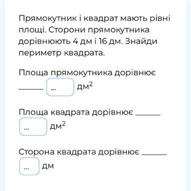 площа прямокутника дорівнює 16*4=64 дм²