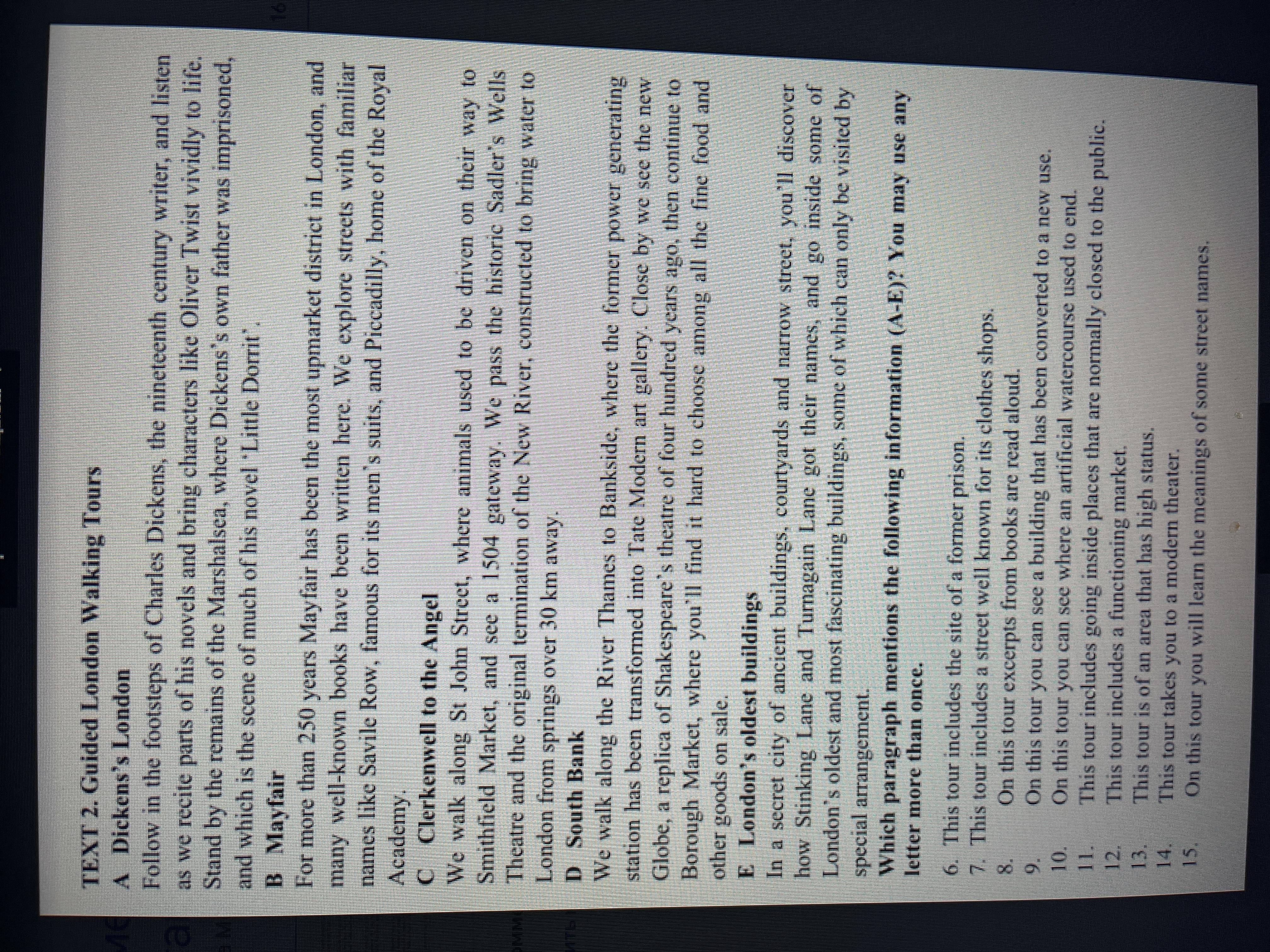 6. A) Dickens's London (mentions the remains of the Marshalsea, where Dickens's father was imprisoned)