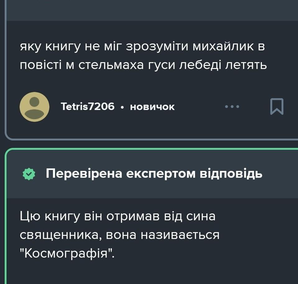 1. Яку книгу не зміг зрозуміти Михайлик (М. Стельмах «Гуси-лебеді летять») і чому?