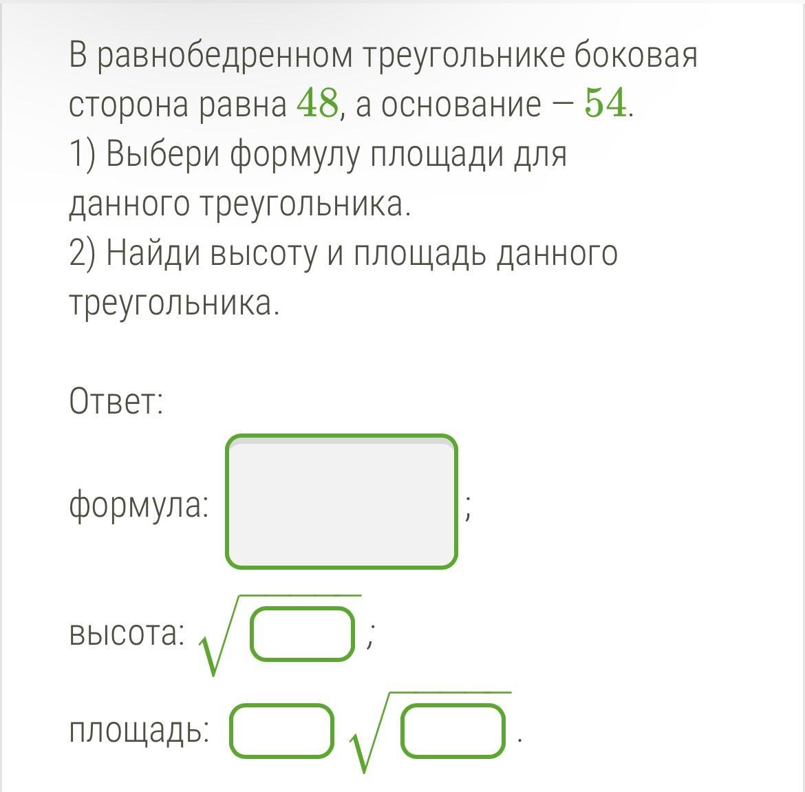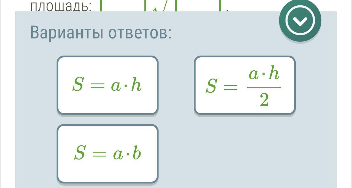 1) Выбери формулу площади для данного треугольника.