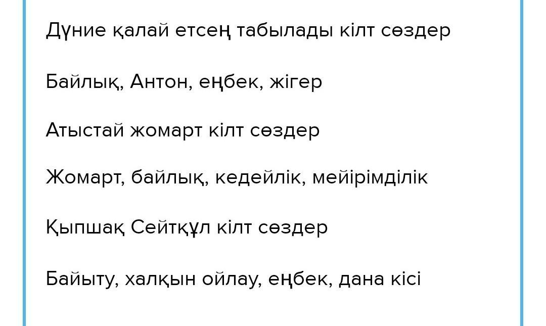 Менің пікірім... Кестеге әңгіме бойынша пікірін білдіреді. Әңгіменің тақырыбы Әңгімеден кандай тұжырым (ой қалыптастыруға ) болады? > «Қыпшақ Сейтқұл» «Дүние калай етсең табылады>>