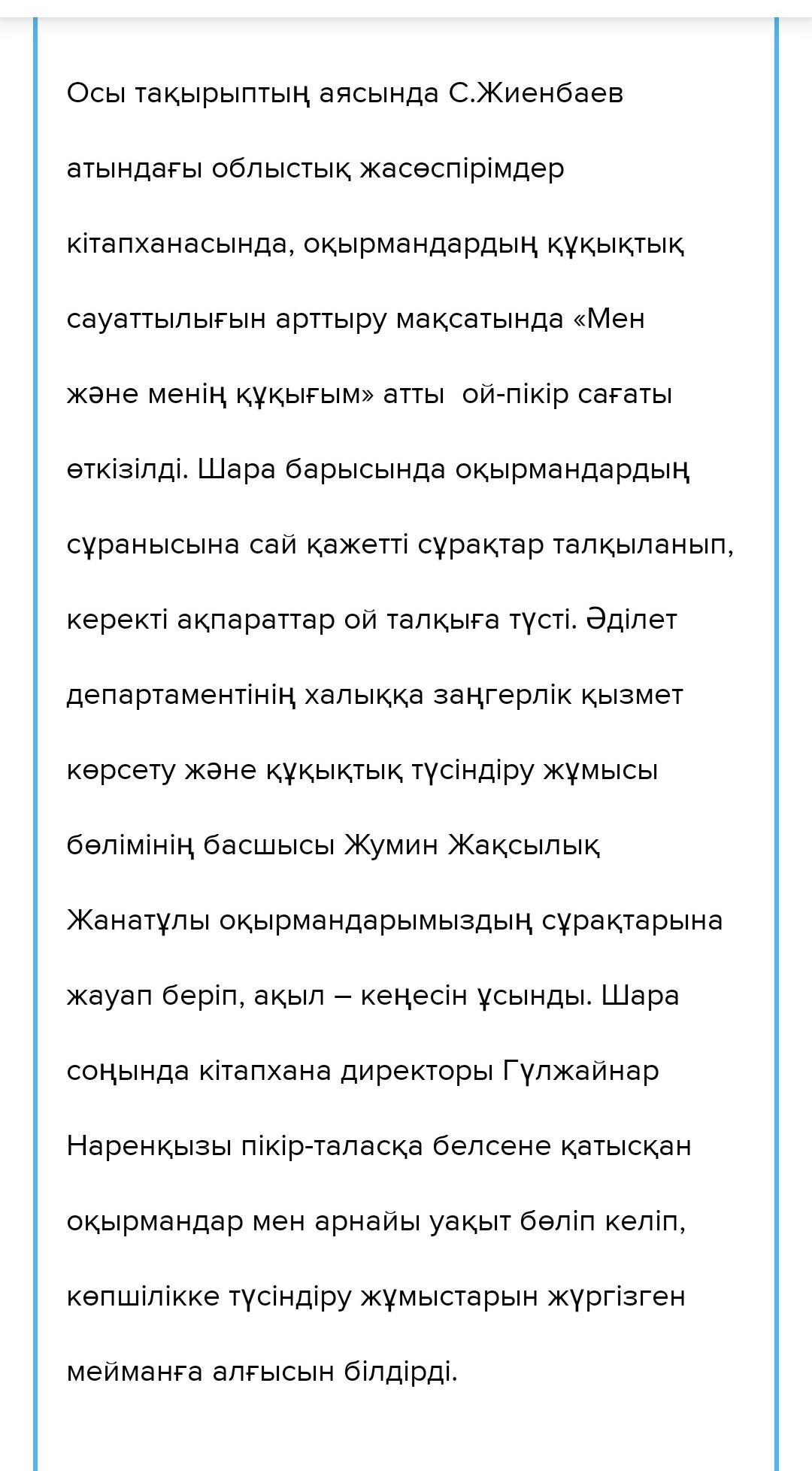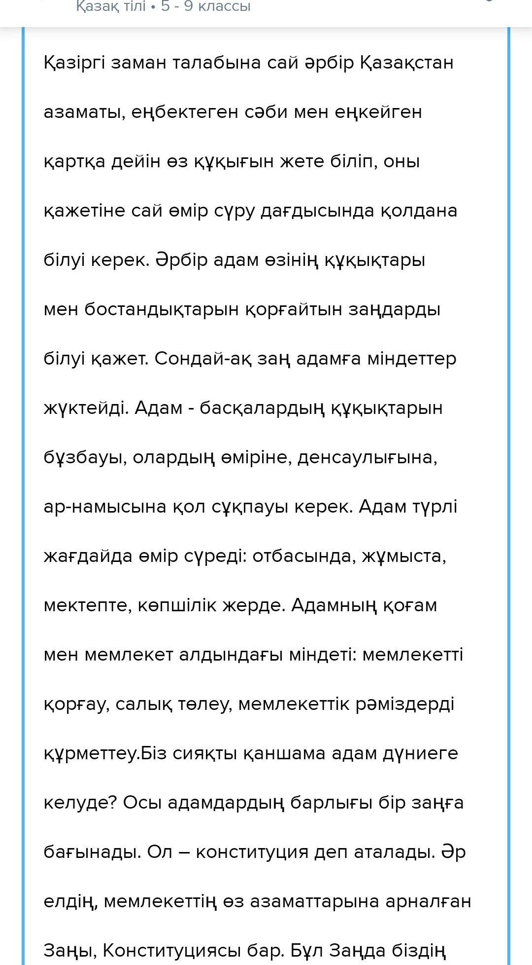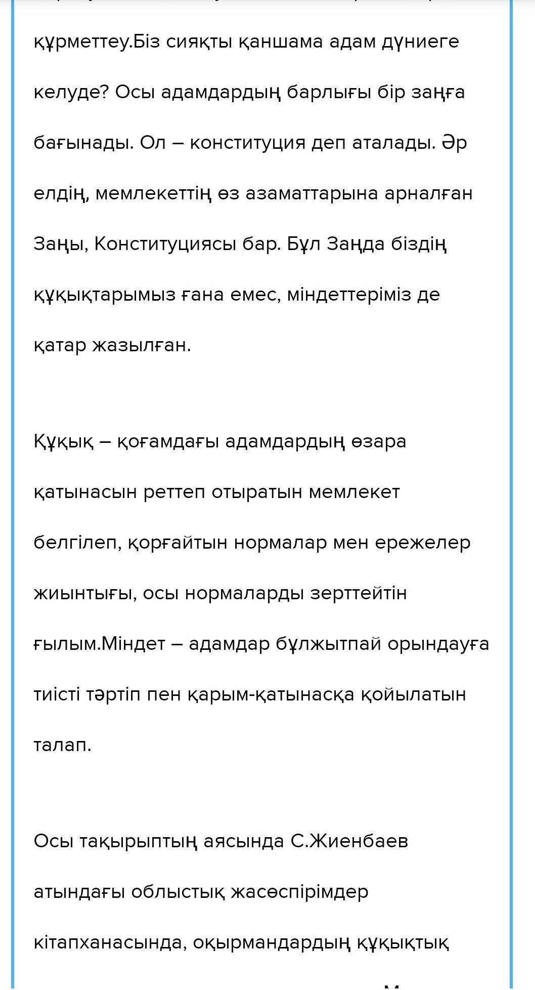 (тезис) жазыныз. Жазба жұмысын орындау. 2.«Адам құқығы - менің кұқығым» тақырыбында жазыныз. (150-200 сөз) өз ойыңызды дәлелдеп, аргументативті эссе