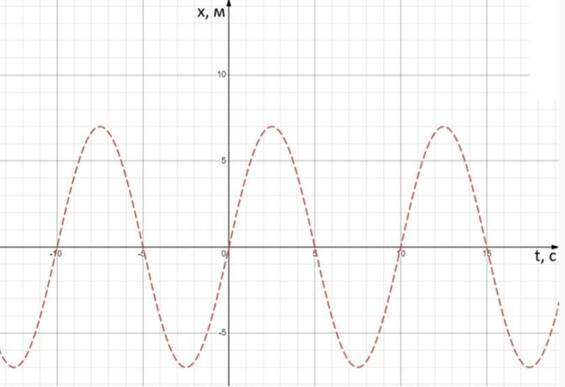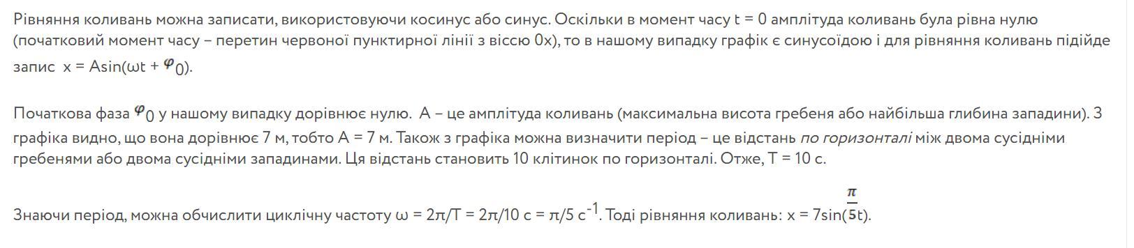 Коливання тіла зображено на графіку (див. рис.). Запишіть рівняння коливань, використовуючи графік
