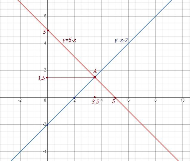 Точка пересечения прямых - точка A(3,5 ; 1,5 ) .