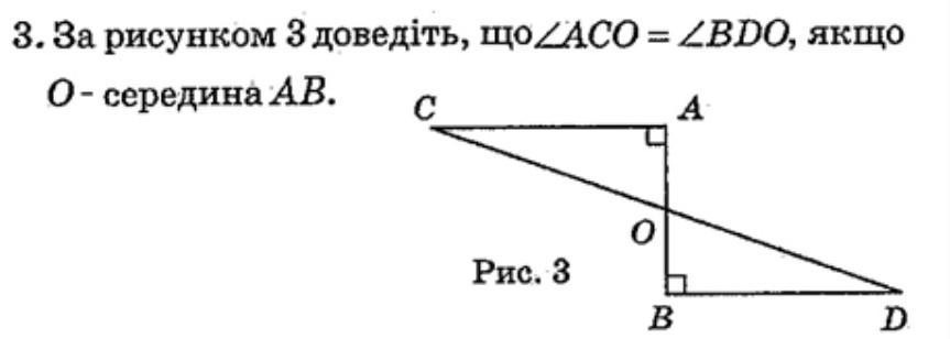 ∠АОС = ∠BOD - як вертикальні , тому ΔАСО = ΔBDO за катетом і