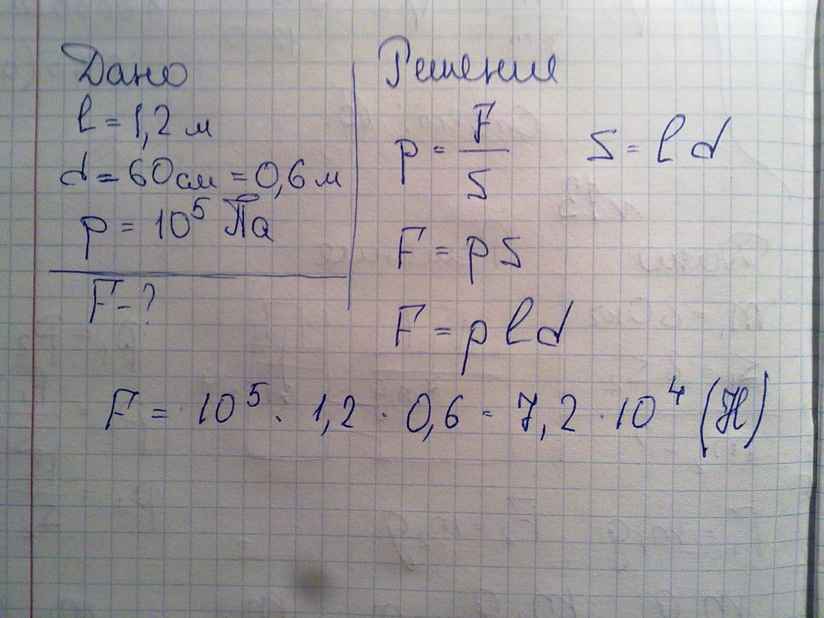 Рассчитайте силу с которой воздух давит на поверхность стола длинной 1.2 м шириной 60 см(принимая атмосферное давление равным 10в5 степениПА) И если можно всё подробно написать