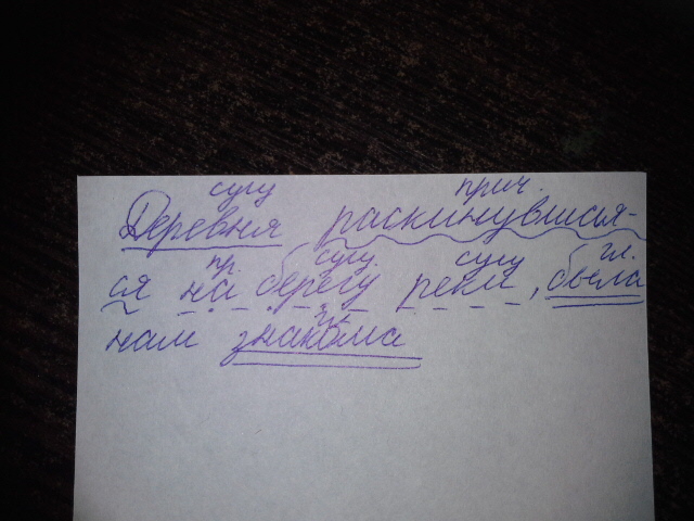деревня существительное раскинувшаяся причастее прил на берегу сущ реки сущ була гл нам знакома гл