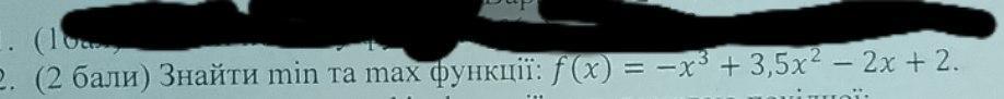 Таким чином, мінімум функції F(x) = -x² + 3.5x² - 2x + 2 досягається при x ≈ 0.36.