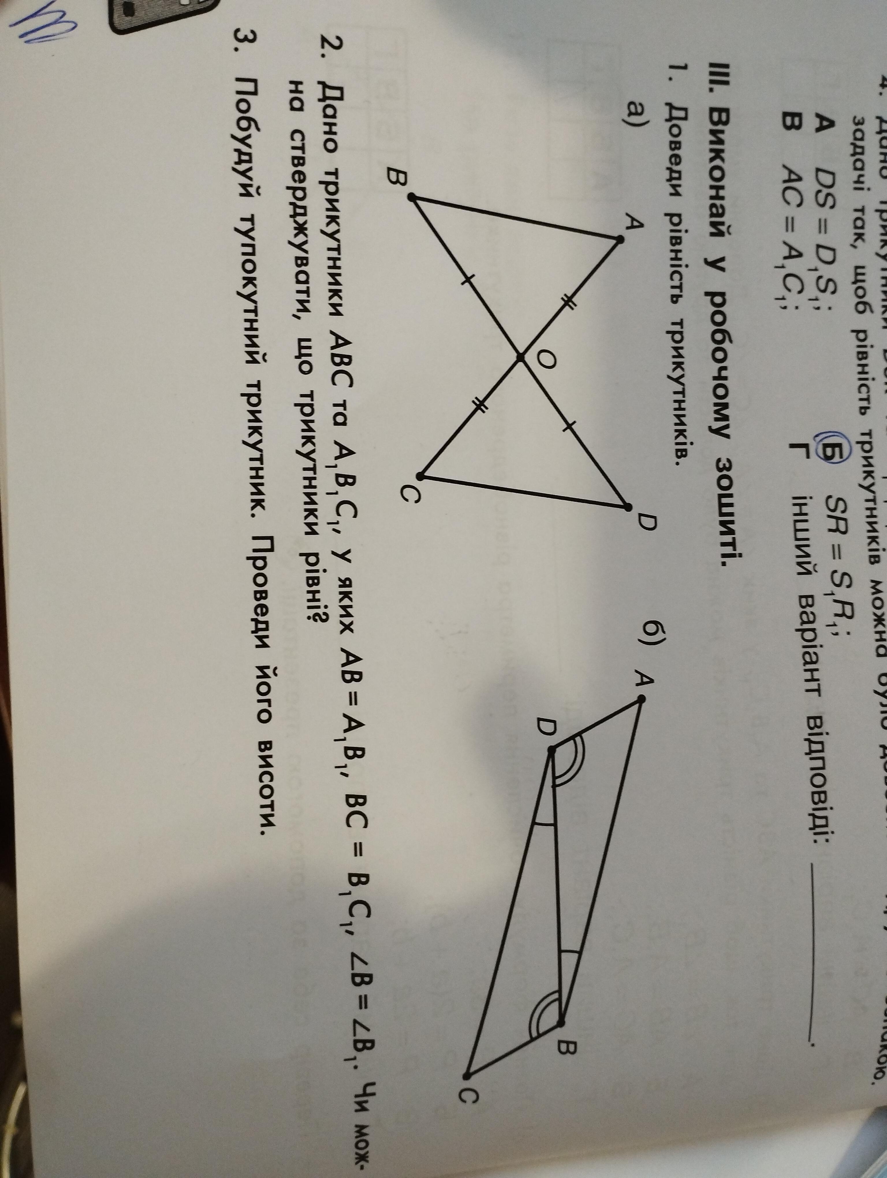 У них: AO = CO, BO = DO, ∠AOB = ∠COD (як вертикальні)