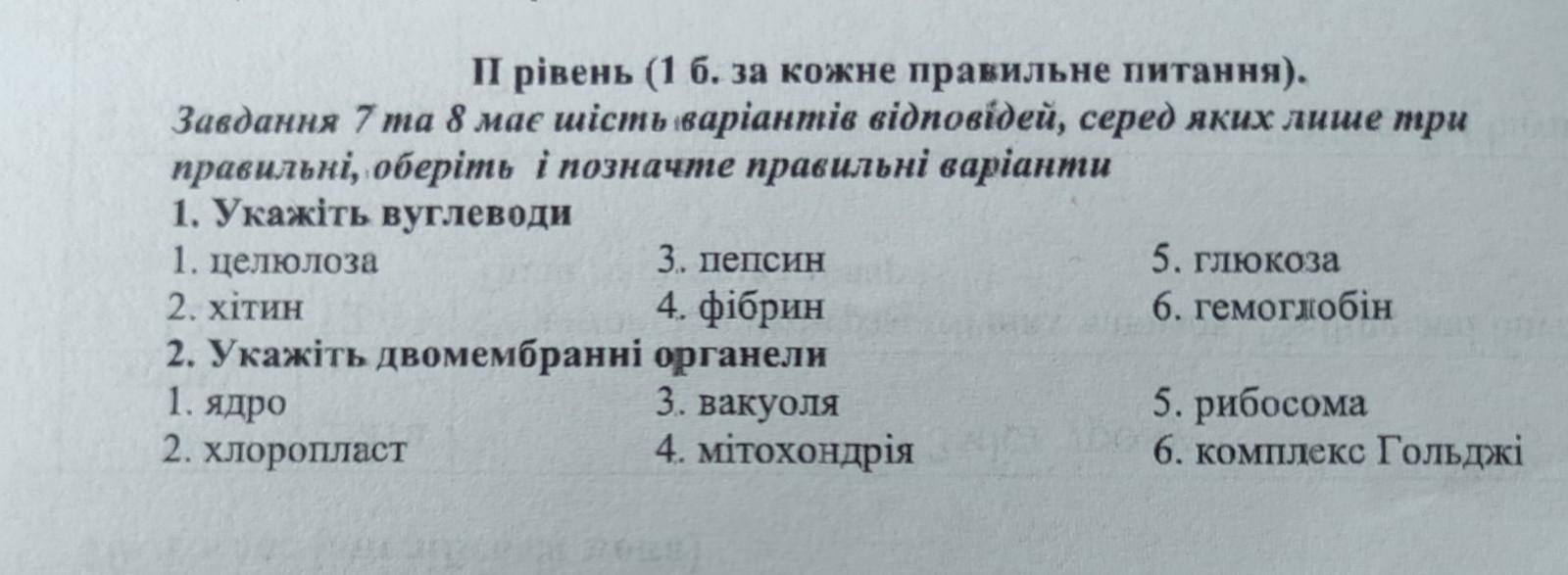 1. Деякі приклади вуглеводів включають глюкозу, сахарозу (цукор), крохмаль (знайдений у картоплі та хлібі) та целюлозу (складова рослинної клітинної стінки).
