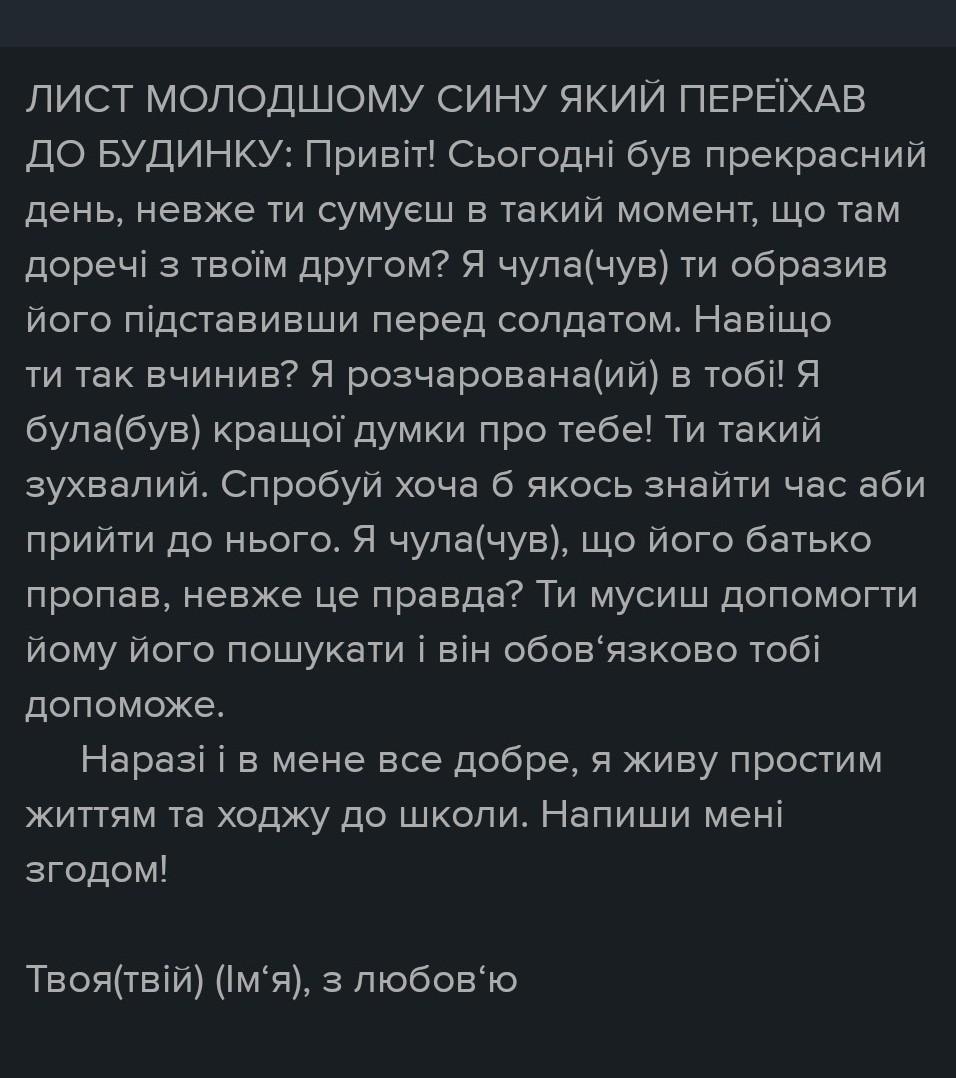 НАПИСАТИ У ФОРМІ ЛИСТАА!!!!!НУЖНО НАПИСАТЬ ХОРОШО ПОТОМУ ЧТО ЕТО К/Р.