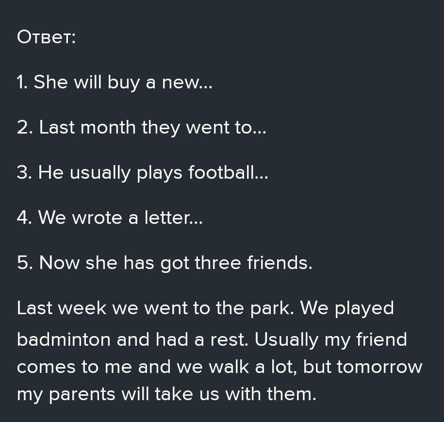 11 Write questions using the question words. 1) I visit my friends. (Who?) 2) Ann cleans her room every day. (What?) 3) Nick goes to school. (Where?) 4) My friends got up late. (When?) 5) We shall go for a walk. (Where?)
