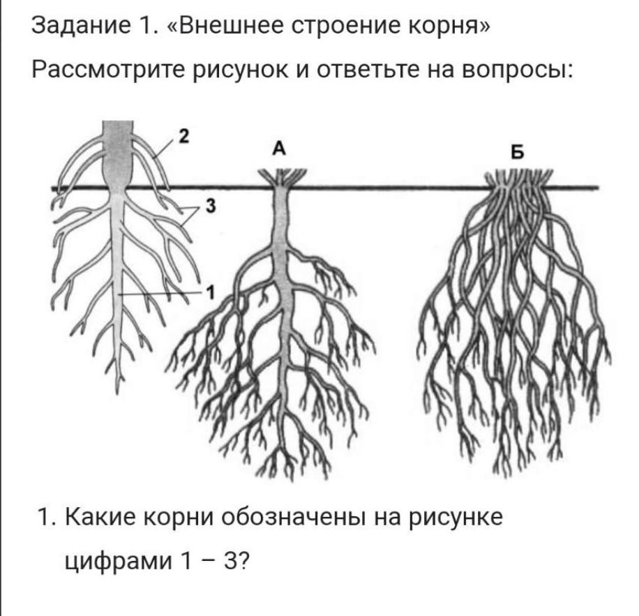 ПОЖАЛУЙСТА ПОМОГИТЕ ДАМ 70 БАЛЛОВ КАКИЕ КОРНИ ОБОЗНАЧЕНЫ НА РИСУНКЕ ЦИФРАМИ 1-3? ПОМОГИТЕ ПОЖАЛУЙСТА