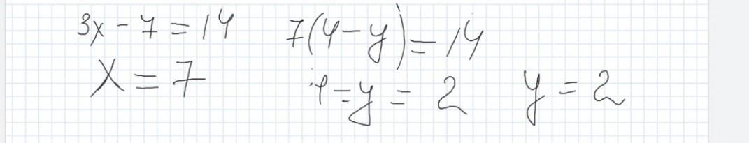 розв'яжіть систему рівнянь способом підстановки {x(4-y)=14, x(4-y)=3x-7} якщо (x0:y0) - розв'язок системи, то y0=